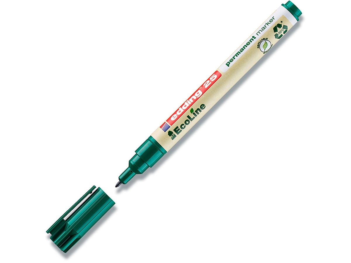 Markeren har rund spids med bredde på 1 mm. Takket være dens lysægte og slidbestandige blæk er den ideel til brug på næsten alle overflader såsom plastik, metal, glas osv. Det alkoholbaserede blæk med minimal lugtafgivelse er frit for xylen og toluen, og ligesom alle permanente markere i EcoLine-serien er edding 25 lavet af 90 % genanvendt materiale.