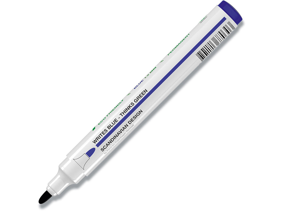 Første SVANEMÆRKEDE permanente marker på markedet. Når du vælger svanemærkede produkter, er du med til at mindske miljøbelastningen og er sikret, at kvalitet og holdbarhed er i orden. Markeren er med alkoholbaseret permanent blæk, rund spids og plastbeholder.