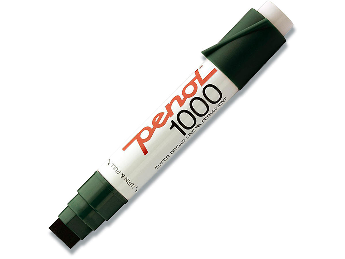 Denne fast marker har ekstra bred shisel spids, hvilket gør denne vandfaste Penol pen, særlig velegnet til skrivning af skilte. Med den skrå spids har markeren en skrivebredde på 3-16 mm.Penol 1000 blå permanent marker er desuden velegnet til, at tegne/skrive på alle glatte materialer, som f.eks. glas, plastik og metal uden at prelle af. Den permanente blæk er vind og vejr bestandig, og kan derfor også anvendes udendørs. Permanent markeren er i aluminium og plasthætten indikerer markerens farve. Der er mulighed for genopfyldning af denne Penol pen. Den permanente marker fås ligeledes i farverne blå, rød og sort.