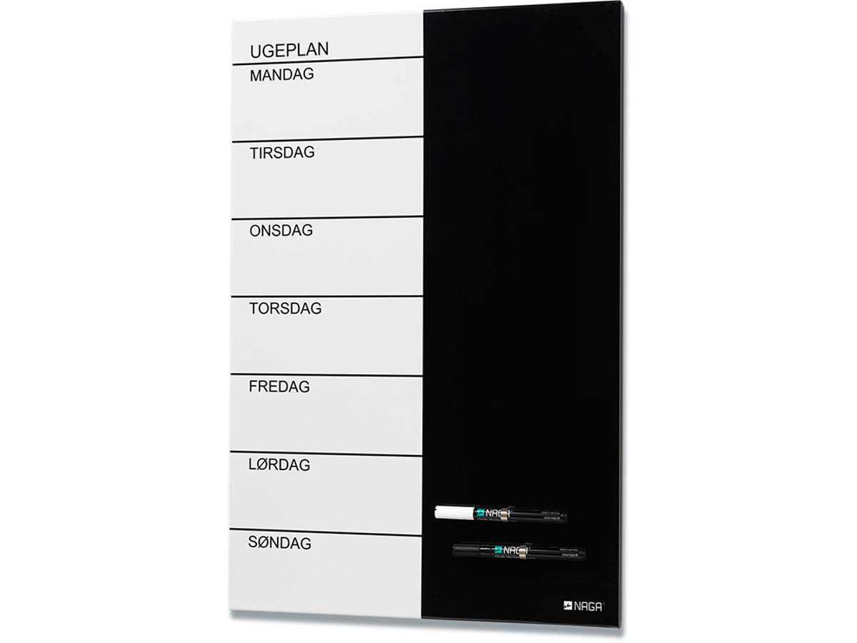 Naga Magnetisk Stål ugetavle 60 x 40 cm. Dansk