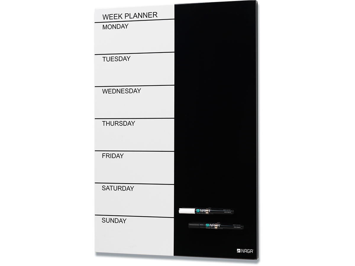 Naga Magnetisk Stål ugetavle 60 x 40 cm. Engelsk