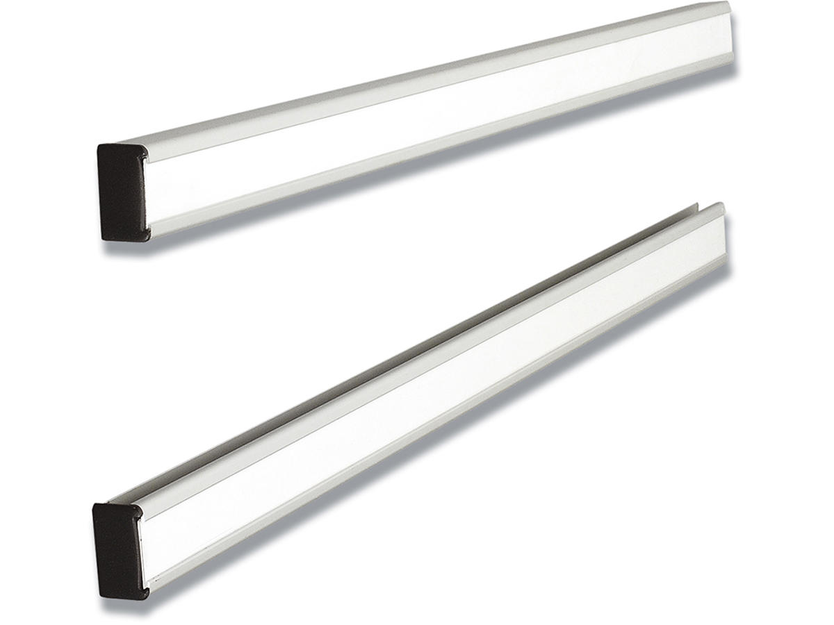 Vælg et par Nobo T-kortbjælker, så du kan holde dit T-kortsystem sikkert sammen. Disse stærke aluminiumsskinner leveres med blanke titelstrimler og klipses ganske enkelt oven på dine T-korttavler med henblik på at skabe et solidt planlægningssystem til nem vægmontering.