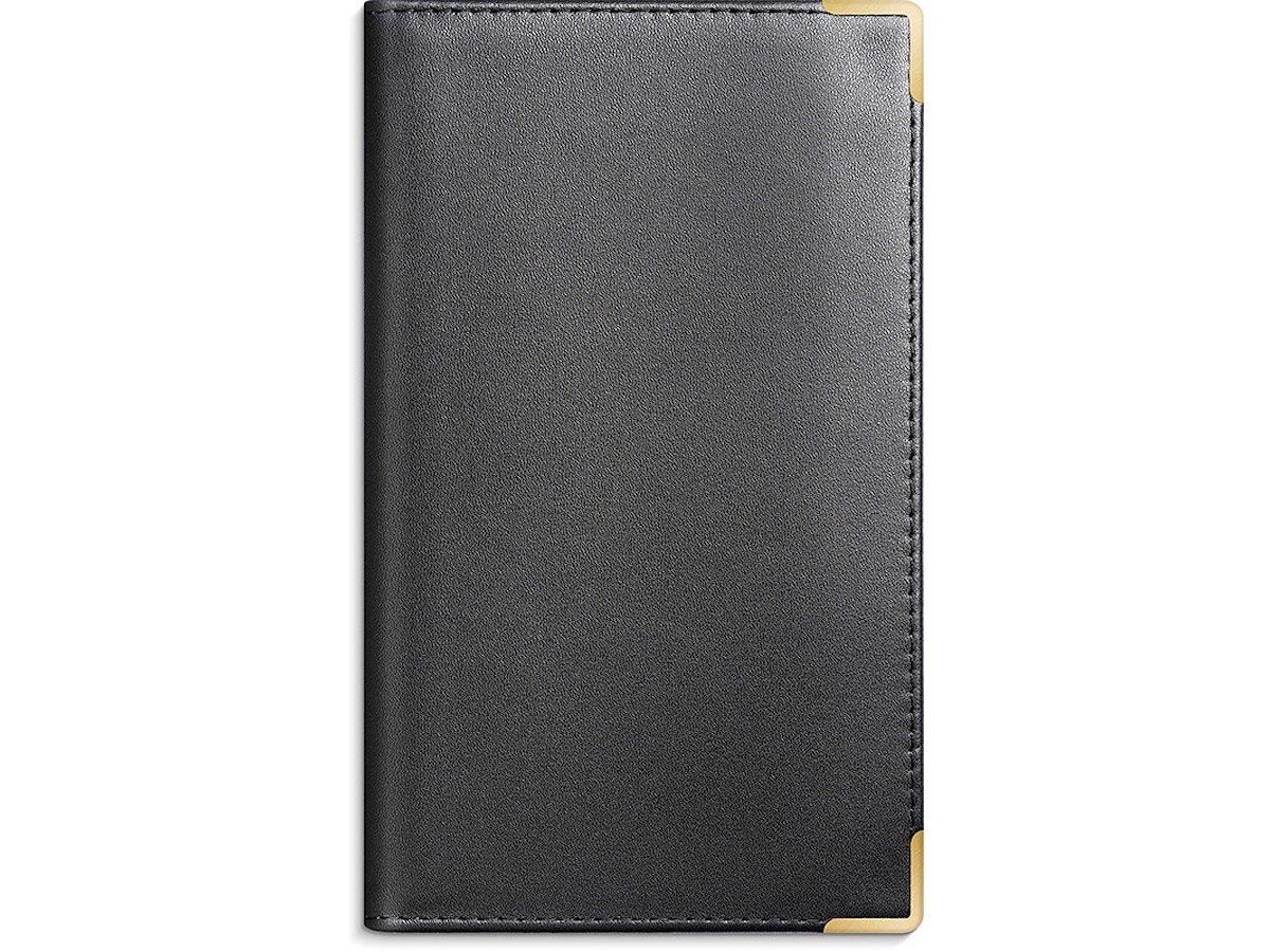 Omslag uden indhold i ægte skind med messinghjørner til index planner eller week planner. Plads til kalender refill, telefonregister samt notesblok. Derudover plads til 6 kreditkort. Gør din index eller week planner luksuriøs med dette skindomslag.