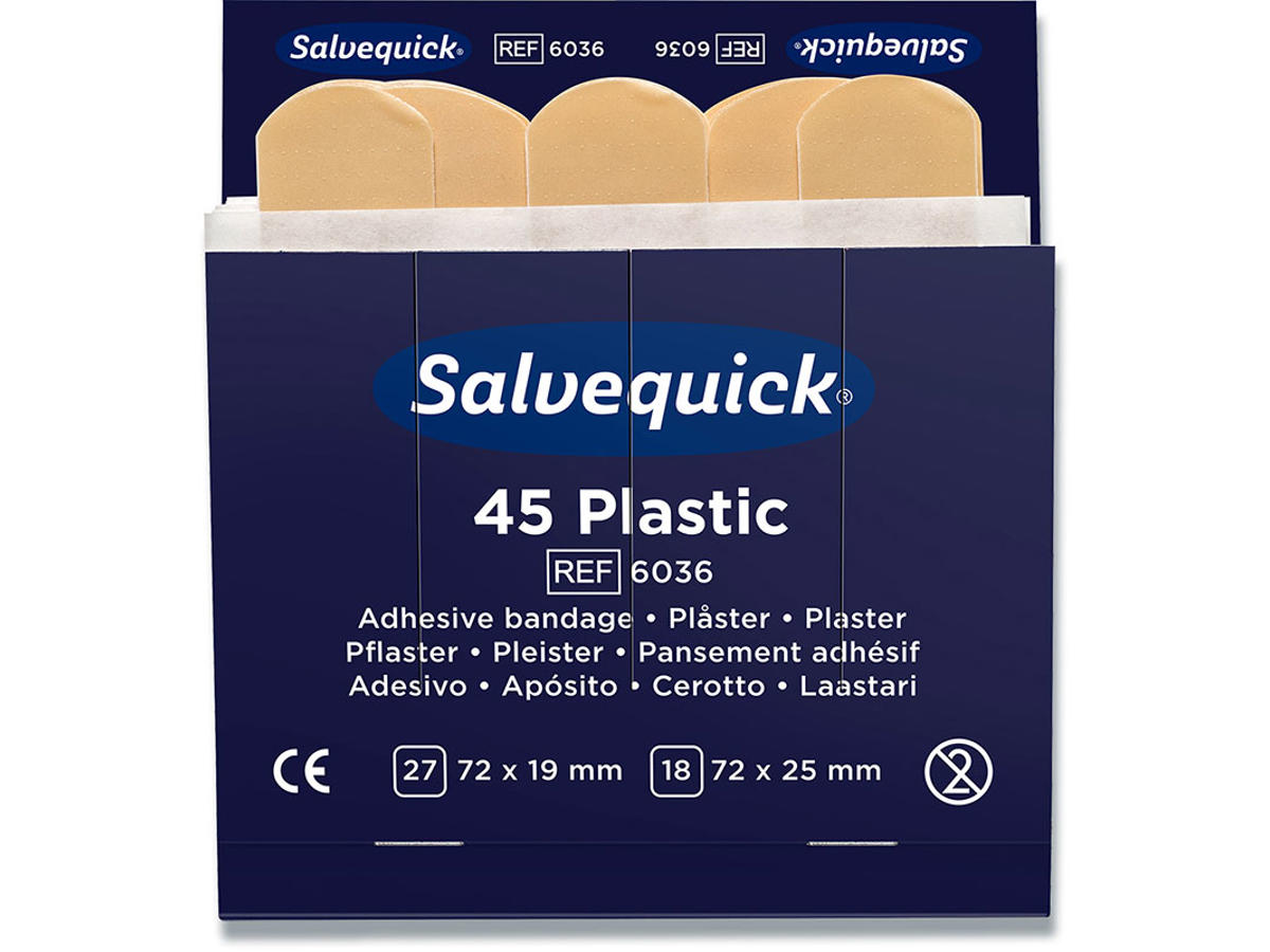 Refill til plasterautomat/dispenser. Indhold Hver refill indeholder 45 plastre (27 stk. 72x19 mm og 18 stk. 72x25 mm) 6 refiller/æske