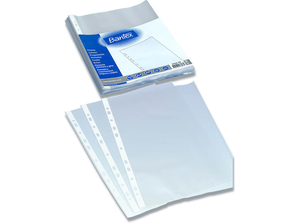 Plastlomme, A4, Åben top, 0.04 mm, 100 stk, Bantex