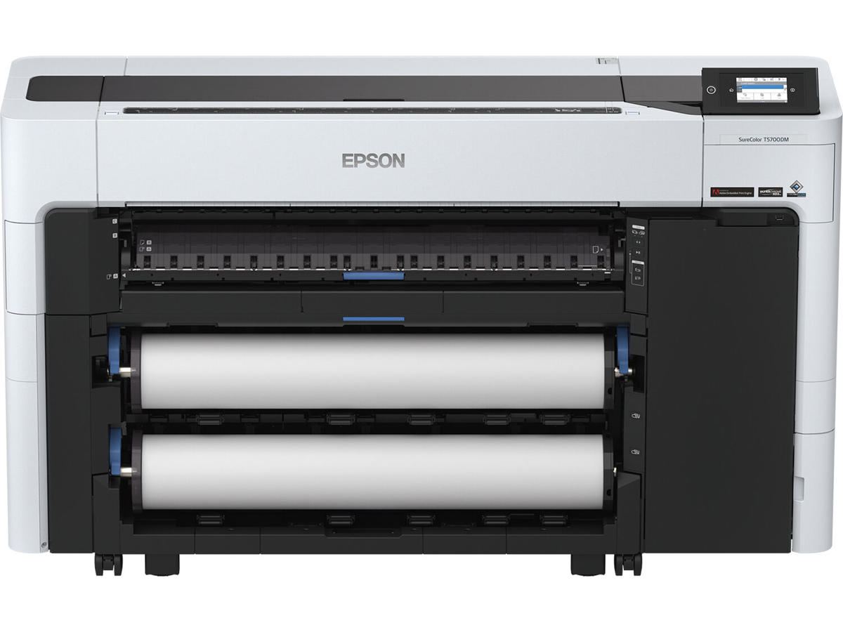 Epson SureColor SC-T5700D. Udskrivningsteknologi: Inkjet, Maksimal opløsning: 2400 x 1200 dpi, Sidebeskrivelsessprog: ESC/Page, PDF 1.7, PostScript 3. Maksimal printstørrelse: A0 (841 x 1189 mm), Medietyper til papirbakke: Rulle, ISO A-serie, størrelser (A0...A9): A0, A1, A3+, A4. Mobile udskrivningsteknologier: Apple AirPrint, Epson Cloud Solution PORT. Produktfarve: Sort, Hvid, Kontroltype: Berøring, Intern hukommelse: 4096 MB. Strømforbrug (strømbesparelse): 32 W, Strømforbrug (standby): 2 W, Strømforbrug (typisk): 80 W