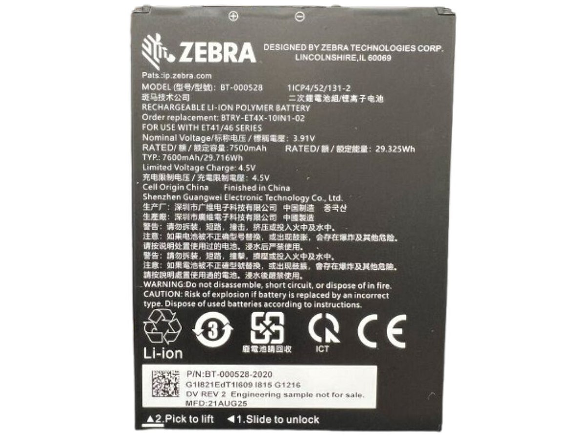 Zebra BTRY-ET401-10INC-01 Reservedel og tilbehør til tablet Batteri