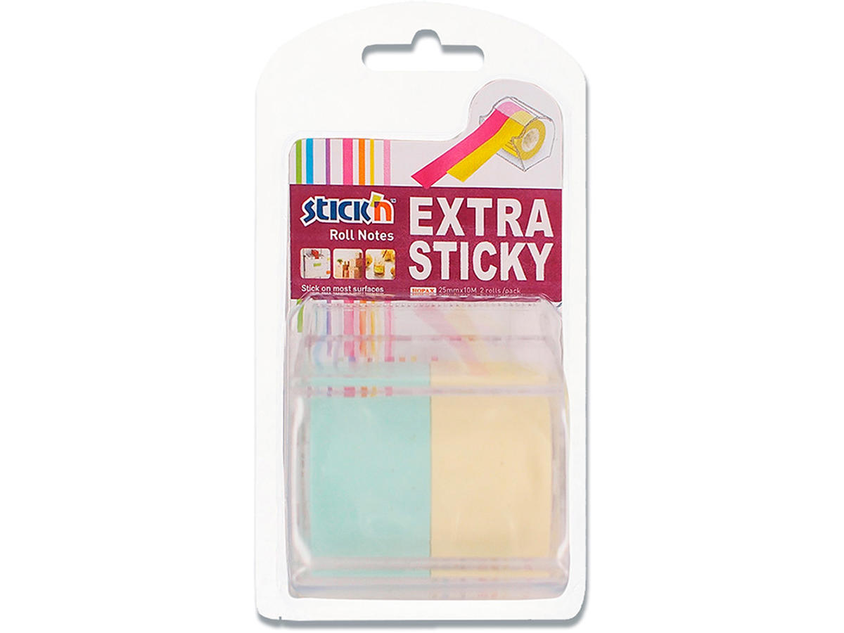 Memonotes, 25mm x 10m, Gul og blå, 2 ruller, Stick'n Extra Sticky