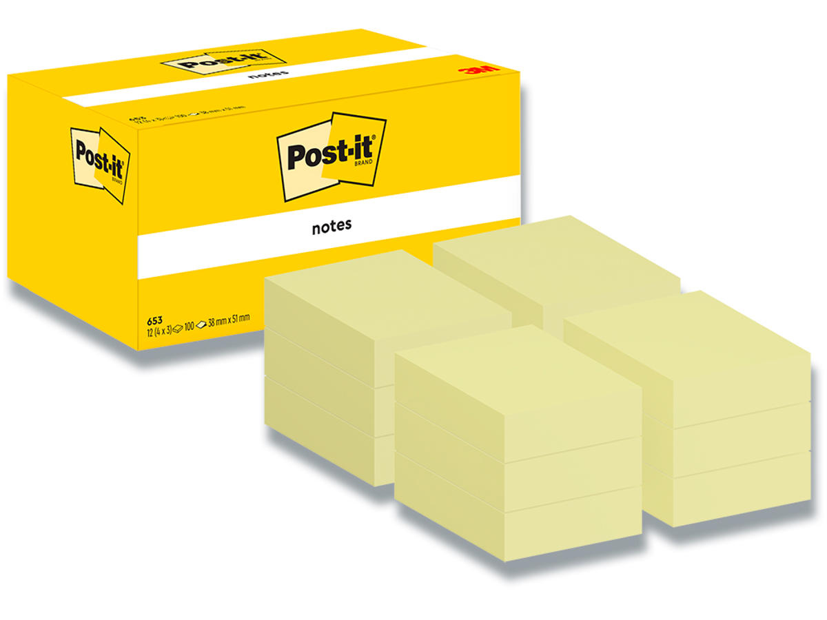 Memonotes, 38x51 mm, Gul, 12 blokke, Post-it