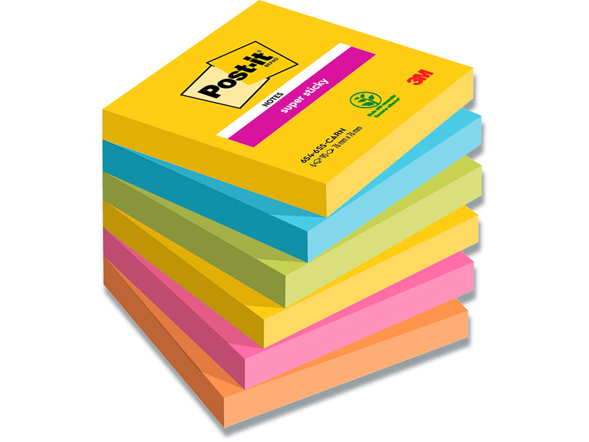 Memonotes, 76x76 mm, Assorteret Carnival, 6 blokke, Post-it Super Sticky