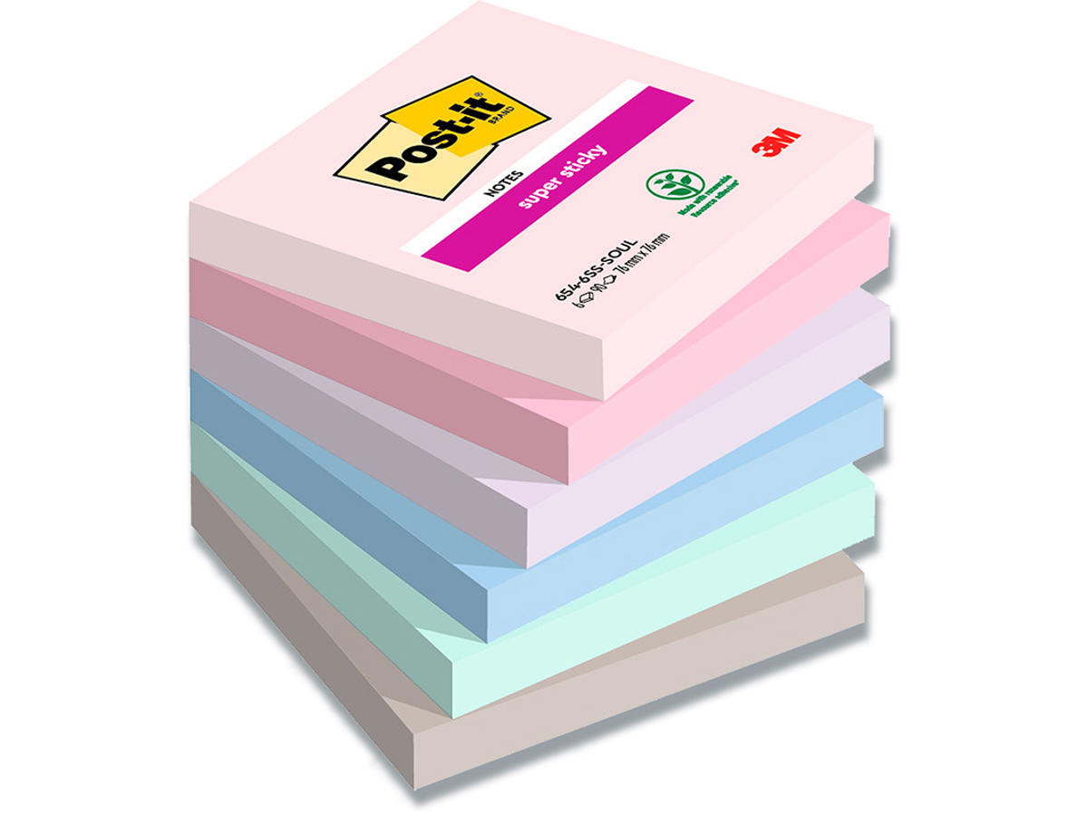 Memonotes, 76x76 mm, Assorteret Soulful, 6 blokke, Post-it Super Sticky