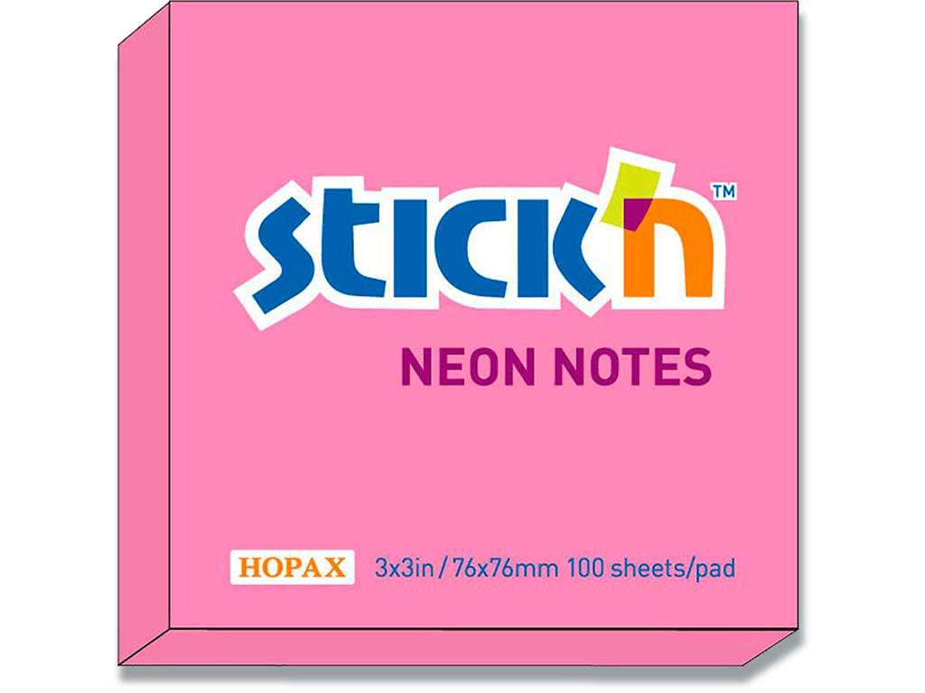 Memonotes, 76x76 mm, Neon rosa, 1 blok, Stick'n