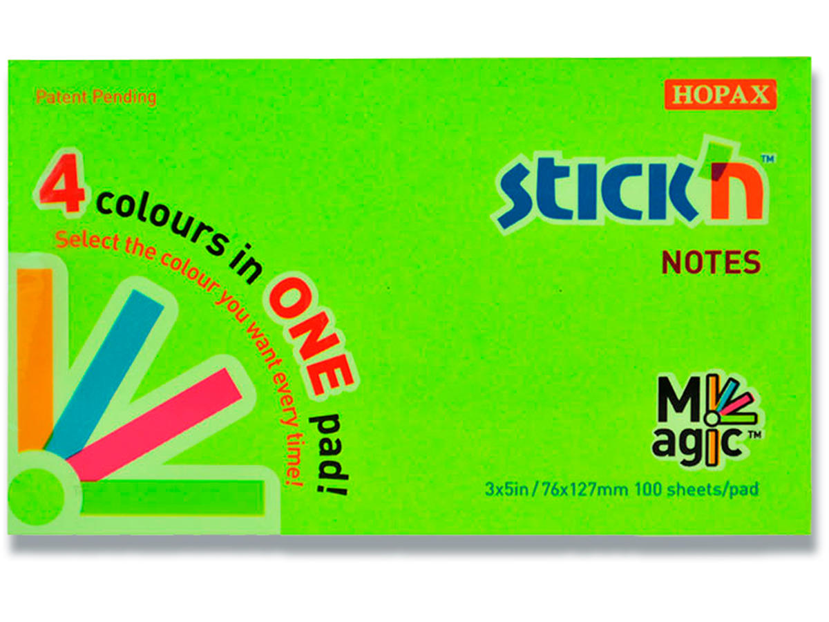 Memonotes, 76x127 mm, 4 assorterede farver, 1 blok, Stick'n Magic