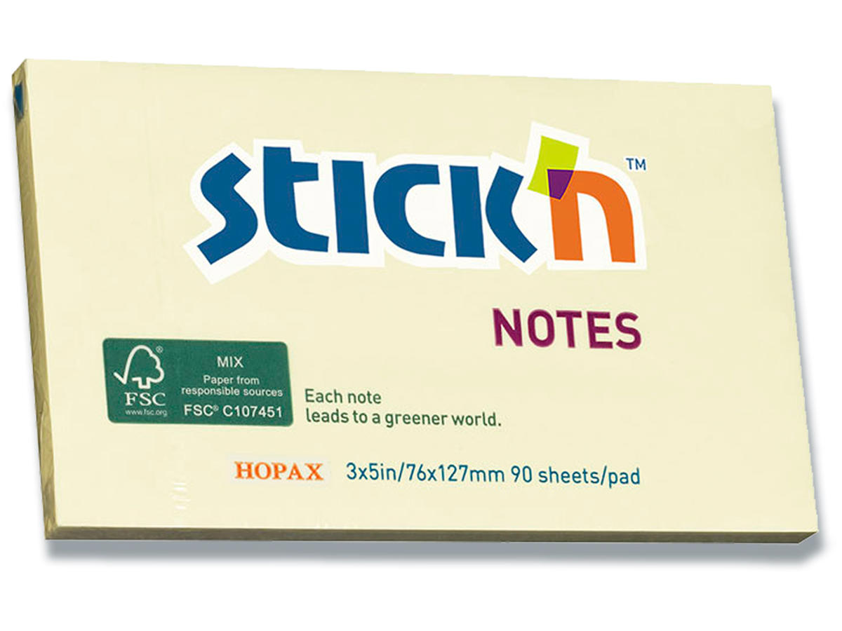Memonotes, 76x127 mm, Gul, 1 blok, Stick'n