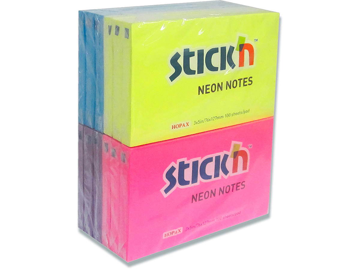 Memonotes, 76x127 mm, Gul Blå Magenta Lilla, 12 blokke, Stick'n