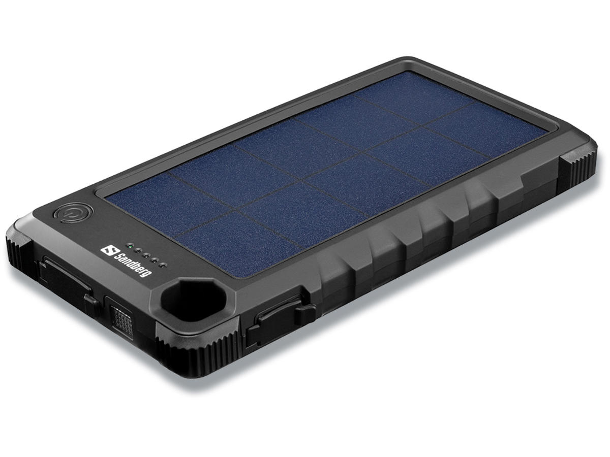 Sandberg Outdoor Solar Powerbank 10000 giver dig op til 4 opladninger af din smartphone. Det til trods er den super kompakt og vejer ikke meget ekstra i rygsækken. Powerbanken er udstyret med et effektivt solpanel, som i løbet af en dag i sollys genererer nok strøm til en ekstra opladning af din smartphone. Powerbanken er solidt indpakket i en IP66 skal, der er sikker i al slags vejr, og tåler at blive tabt i sneen, sidde bag på rygsækken på vandring gennem en elv, eller blive tabt i ørkensandet.