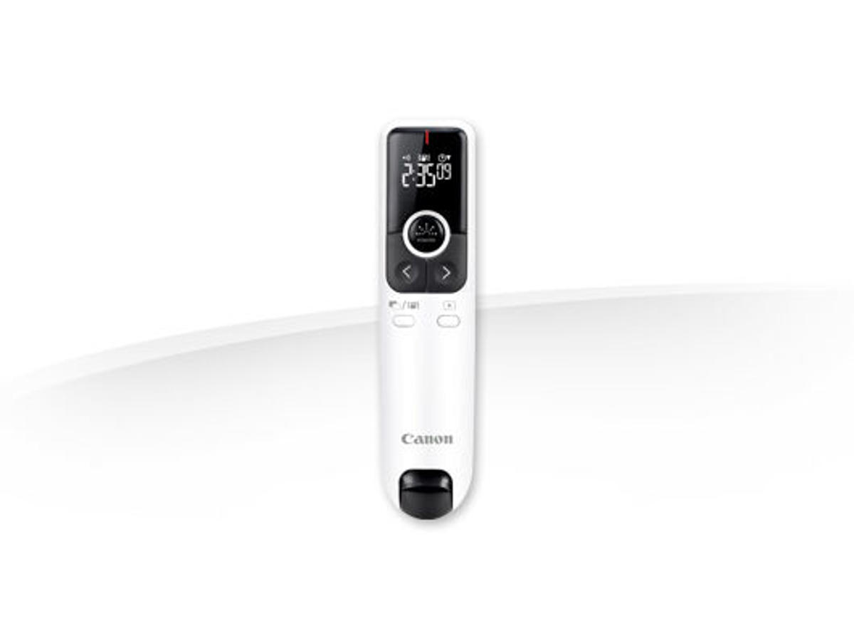 Canon PR100-R. Trådløs teknologi: IR, Frekvensbånd: 2.4 GHz, Trådløs rækkevidde: 15 m. Produktfarve: Sort, Hvid, Præsentationsfunktioner: Laserpointer, Fjernbetjening. Batteritype: AAA. Understøttede Windows-operativsystemer: Windows 10 Education, Windows 10 Education x64, Windows 10 Enterprise, Windows 10 Enterprise x64,..., Understøttede Mac-operativsystemer: Mac OS X 10.11 El Capitan, Mac OS X 10.2 Jaguar, Mac OS X 10.3 Panther, Mac OS X 10.4 Tiger, Mac.... Bredde: 33 mm, Dybde: 136 mm, Højde: 26 mm