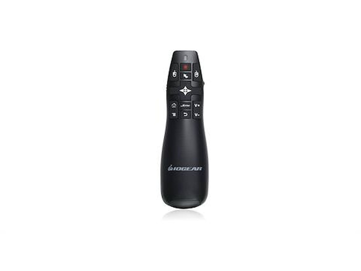 iogear GME430R. Brugergrænseflade med trådløs modtager: USB, Trådløs teknologi: RF, Frekvensbånd: 2.4 GHz. Produktfarve: Sort, Præsentationsfunktioner: Laserpointer, Mus. Batteritype: AAA. Kompatible operativsystemer: Windows 2000, XP, Vista, 7, 8, 8.1 Mac OS X 10.6+. Bredde: 38 mm, Dybde: 28 mm, Højde: 121 mm