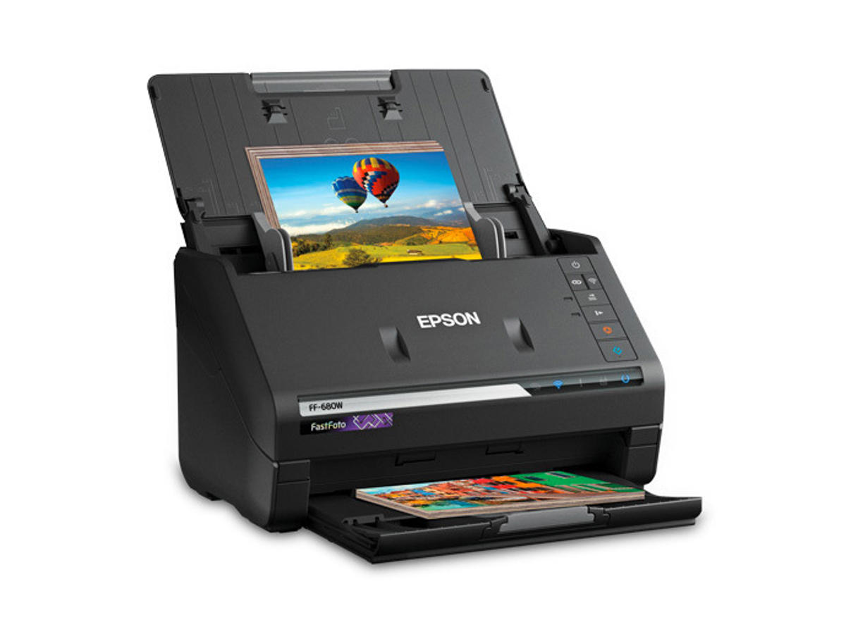 Preserve what’s priceless with the FastFoto FF-680W — the World’s Fastest Personal Photo Scanner. Scan thousands of photos — as fast as 1 photo per second at 300 dpi. SafeTouch Technology offers worry-free scanning for virtually any size, including postcards and Polaroid photos. Second-generation Epson® FastFoto Software makes everything easy, with convenient photo editing and smart file organization tools. Offering the ultimate in versatility, the FF-680W features a variety of modes for quick sharing, archiving and enlargements — plus documents, too. Additional features include Easy Auto-Upload to cloud services and Single-Step Technology for 2-sided scanning.