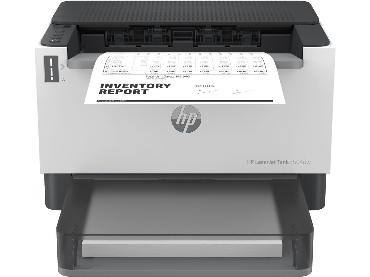 Effektiv produktivitet. Særdeles prisvenlig påfyldning. Oplev alle de erhvervsrettede funktioner og besparelse med HP LaserJet Tank 2504dw-printer med op til 5.000 sider forudpåfyldt originalt HP-toner.[1]