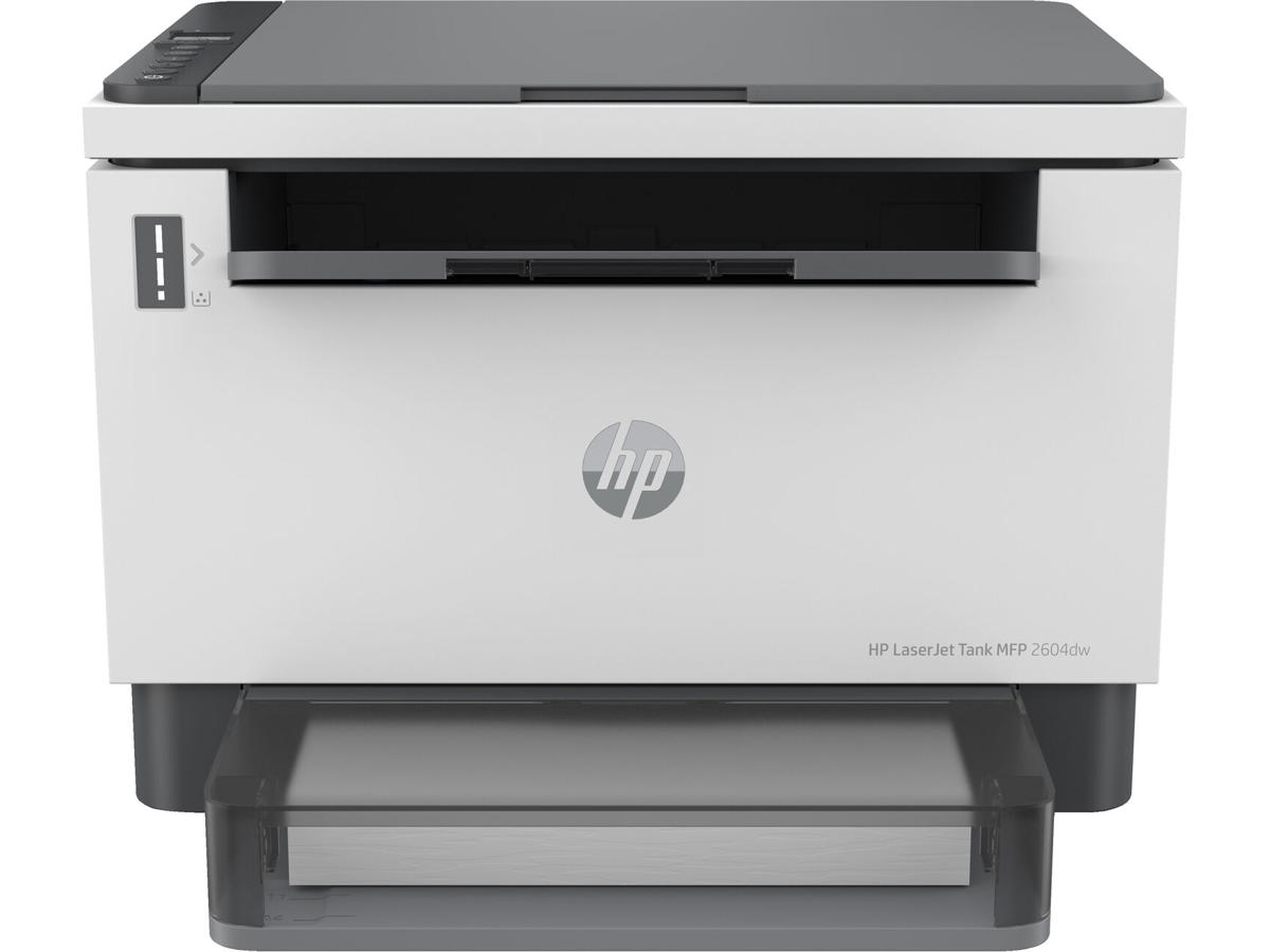 Effektiv produktivitet. Særdeles prisvenlig påfyldning. Oplev alle de erhvervsrettede funktioner og besparelse med HP LaserJet Tank MFP 2604dw All-in-One-printer med op til 5.000 sider forudpåfyldt originalt HP-toner.[1]