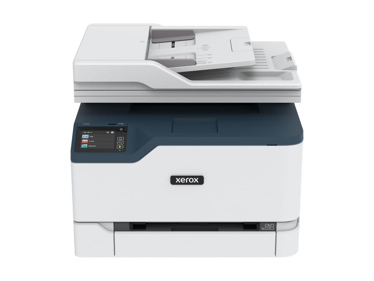 Den prisbillige Xerox C235-multifunktionsfarveprinter er designet til travle, små kontorer og hjemmekontorer, som kræver en farveprinter, der kan holde trit med udskrivningsbehovet. Den er let at konfigurere med Xerox® Smart Start-software og er klar til at arbejde hårdt med det samme. Enheden er designet til printmiljøer med stor efterspørgsel, med en 2,4” farveberøringsskærm, 50-arks automatisk dokumentfremfører, automatisk 2-sidet udskrivning på papir med Letter- og Legal-format og har en standardkapacitet på 250 ark. Indbygget trådløs og Wi-Fi Direct-funktionalitet gør det muligt at printe direkte fra mobilenheder og tablets. C230 er en sand arbejdshest med en anbefalet månedlig printvolumen på op til 1.500 sider pr. måned, en 1 GHz dual core-processor, 512 MB hukommelse og udskrivningshastigheder på op til 24 A4-sider pr. minut. Få lavet mere med Xerox Workflow Central, som gør det muligt at konvertere dokumenter til andre sprog, ændre håndskrevne noter til tekstdokumenter, der kan deles, oprette lydfiler af papirdokumenter, som du kan lytte til på farten, automatisk redigere indhold og konvertere scanninger til Microsoft Office-programmer. EPEAT-certificering betyder, at C235 er i overensstemmelse med omfattende kriterier for design, produktion, energiforbrug og genbrug. Vores Green World Alliance-program tilbyder endvidere problemfri genbrug af tonerpatroner.