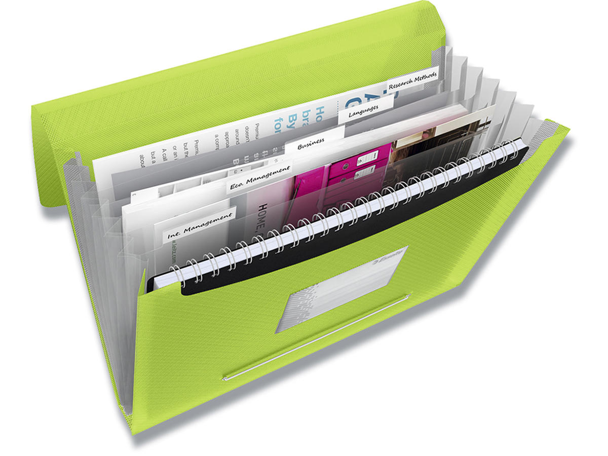 Ekspanderende projektmappe i høj kvalitet. I levende farver og lækkert VIVIDA design. 6 ekspanderende rum med faner, lettere gennemsigtig 0,67 mm tyk PP. Høj kapacitet. Til organisering og opbevaring af dokumenter.