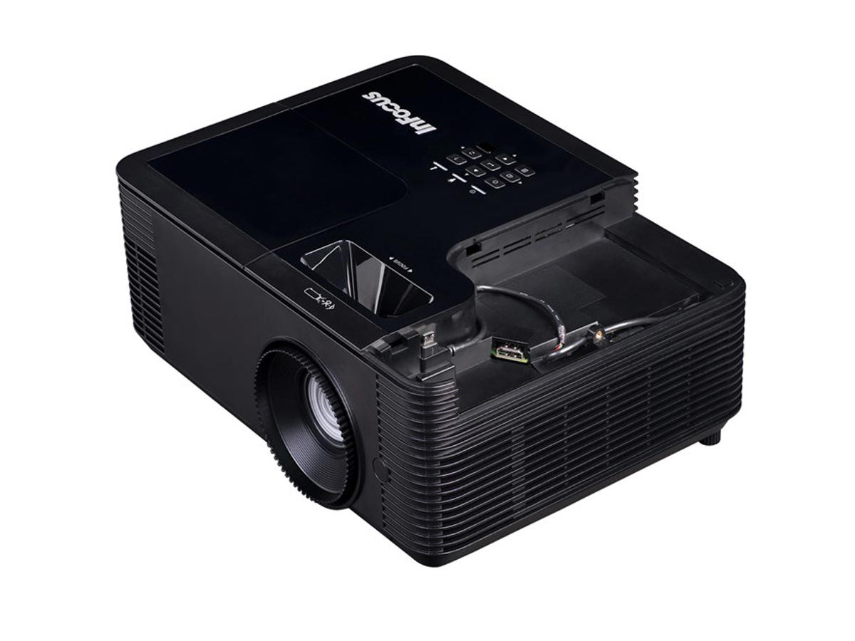 The IN2136 projector offers high quality optics with 1.3x zoom ration, clear focus, and full HD resolution. The projector delivers a longer throw so you have more flexibility on where to mount.