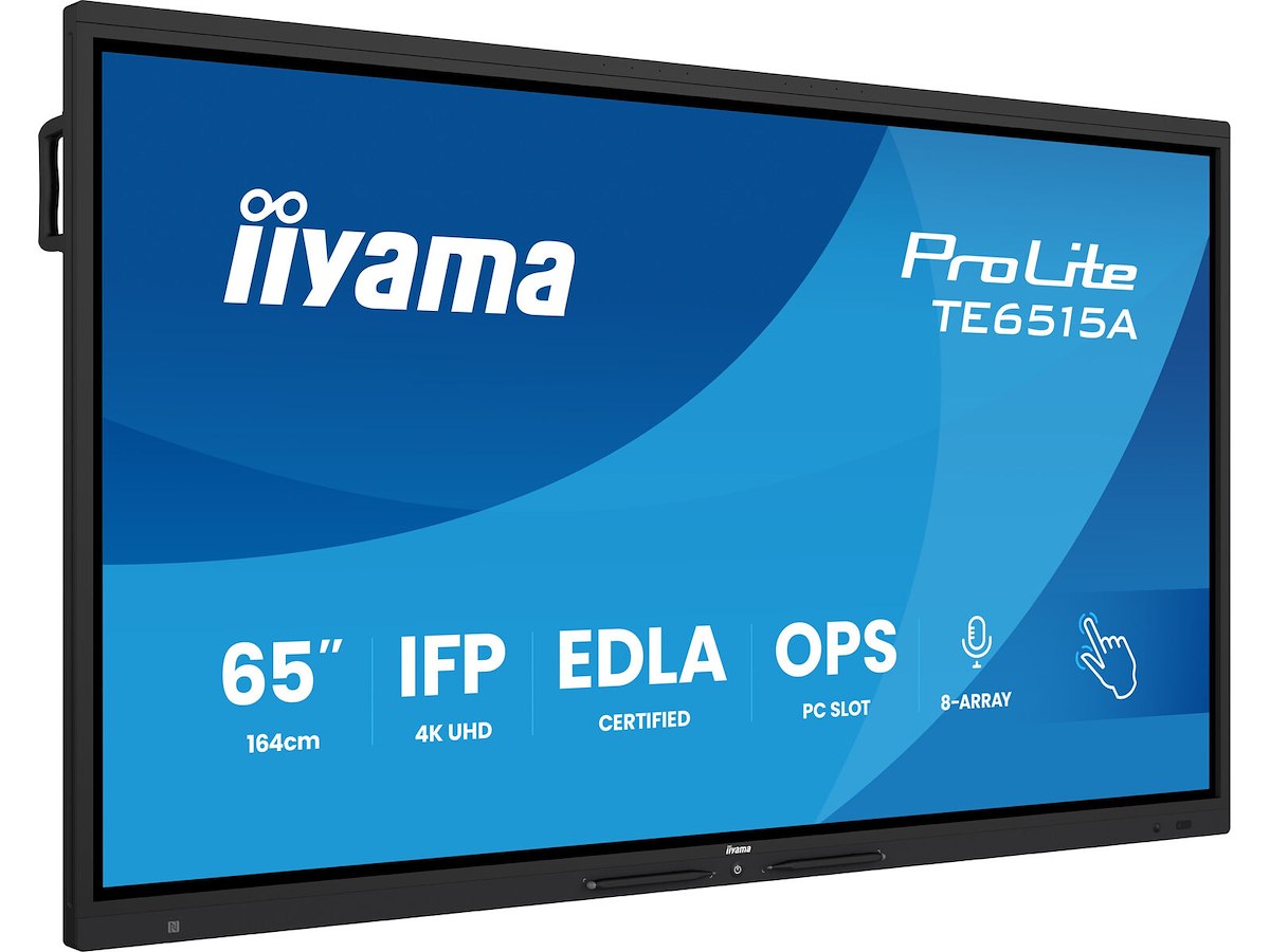 Elegance and functionality come together in the ProLite TE6515A-B2AG. This 65” 4K UHD panel not only delivers precision and performance, but also brings a premium look to modern classrooms and collaborative business environments. With its button-free front panel (only a discreet power button), integrated pen holders, and a stylish fabric-covered bottom bezel that subtly houses high-quality front-facing speakers, the TE6515A elevates the visual experience of any room. It’s more than a tool—it’s part of your space. Coupled with DeepContrast-IR++ technology and Palm Rejection, it offers fluid and natural writing on the Optical Bonding LCD, eliminating parallax for an intuitive feel. Powered by iiWare 21E with Android 14 (EDLA Certified), the display integrates effortlessly into Google environments. Features like WiFi6E, Bluetooth 5.0 and PIR motion sensor add a layer of connectivity, energy efficiency, and access control. With iiControl (DMS), iiShare and integrated EShare app (wireless screen sharing), the TE6515A promotes seamless teamwork—whether you're presenting, teaching, or brainstorming. The TE6515A-B2AG isn’t just an interactive display—it’s a centerpiece for connection, creativity, and collaboration, all wrapped in a refined, modern design.