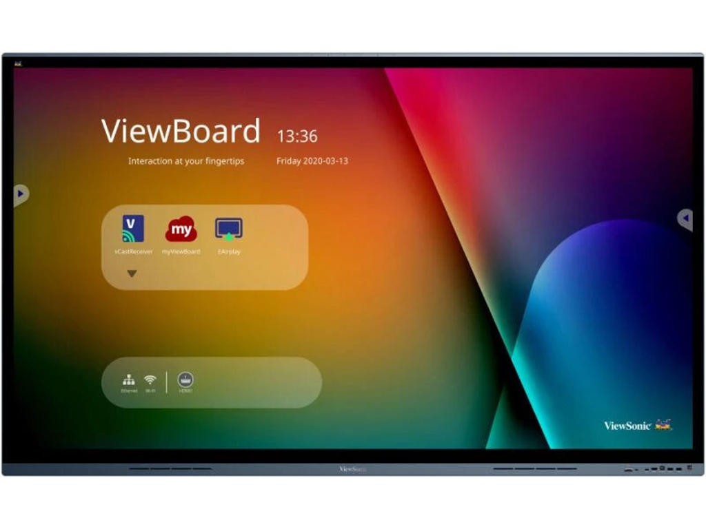 ViewSonic ViewBoard 62 is an unparalleled large-format interactive display that propels collaborators to achieve effective and robust results. The bezel-less 4K UHD display panel is a gateway to a new visual quality and immersive meeting space. Indulge in the maximized precision of true-to-life handwriting strokes thanks to the UFT+ Technology, 20-points multi-touch with multi-grade pen pressure.Compatible with ViewSonic conference speakerphone (VB-AUD-201) and all-in-one video conference camera (VB-CAM-201) systems, The ViewBoard 62 boasts pristine audio and a pixel-perfect image, making it a powerful one-stop meeting station. Furthermore, it allows multiple connections, including comprehensive I/O ports, vCastSender, and myViewBoard Display, as well as built-in USB type-C ports supporting 65W fast charge and top-notch display at the same time.As an undoubted enhancement, the built-in myViewBoard Manager is an intuitive and effortless tool for IT and MIS systems that enables centralized IT control and multi-media presentation.