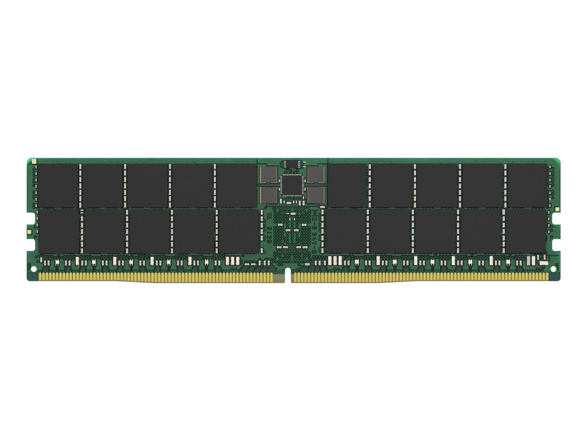Kingston's KSM64R52BD4-128MB is a 16G x 80-bit (128GB) DDR5-6400 CL52 SDRAM (Synchronous DRAM), 2Rx4, ECC, memory module, based on forty 8G x 4-bit FBGA components. The SPD is programmed to JEDEC standard latency DDR5-6400 timing of 52-52-52 at 1.1V. Each 288-pin DIMM uses gold contact fingers.