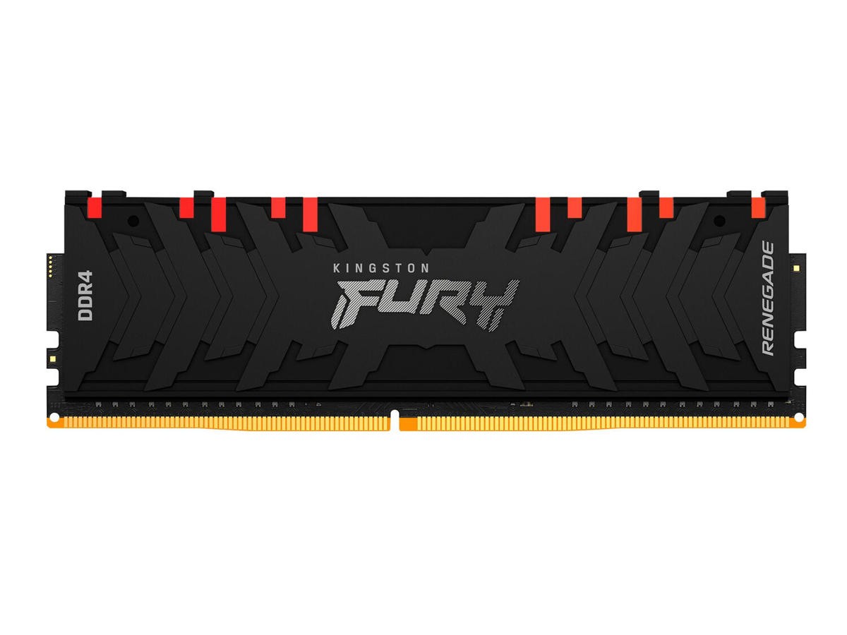 Ultra-fast FURY™ Renegade DDR4 RGB is the perfect upgrade for the gamer who wants cutting-edge performance and brilliant RGB style in their AMD- or Intel-based system. The dynamic RGB lighting effects utilise Kingston FURY's patented Infrared Sync Technology™ to provide smooth, synchronised lighting effects. Crank up your frame rate, improve your broadcasts and make highlight reel clipping a breeze thanks to speeds of up to 4600MHz paired with quick CL15-CL19 latencies. The aggressive, stylish black heat spreader and matching black PCB will allow you to beat the heat and strike fear into the hearts of your foes. It’s available in single module capacities of 8GB-32GB and kits of 2, 4 and 8 with capacities of 16GB-256GB. Renegade DDR4 RGB is Intel XMP certified with profiles optimised for Intel’s latest chipsets – just select the hand-tuned profile in your BIOS and you’re set. 100 per cent factory tested at speed and backed by a lifetime warranty and over 30 years of expertise, dependable Renegade DDR4 RGB gives you extreme performance, show-stopping looks and maximum peace of mind.