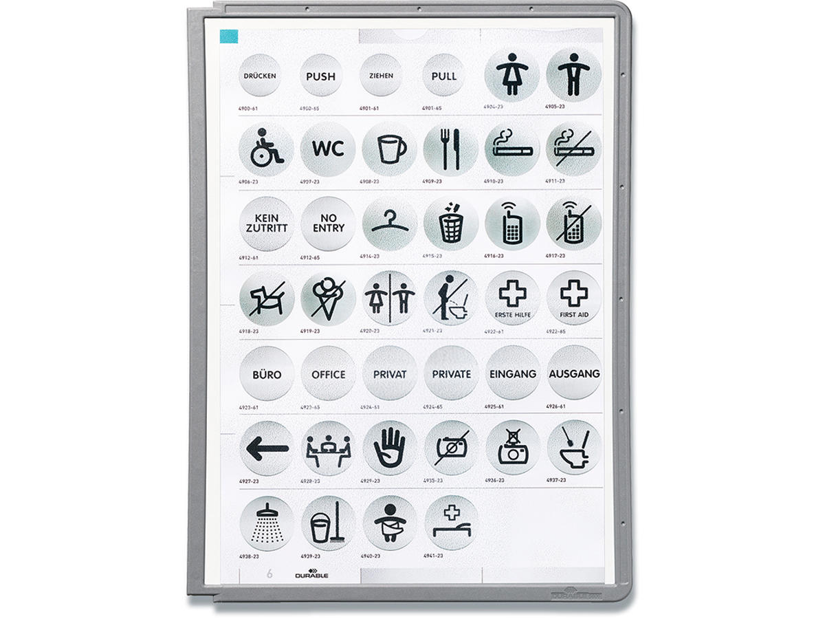 Lomme af pp med farvet ramme med topåbning. Passer DURABLES konsoller til brug i register-/display-/oversigt-systemer der har pin på konsollen. Lomme kan udstyres med etiketholder, at fastgøre langs den øvre kant eller side og er let justerbare (Durable art nr 560919).