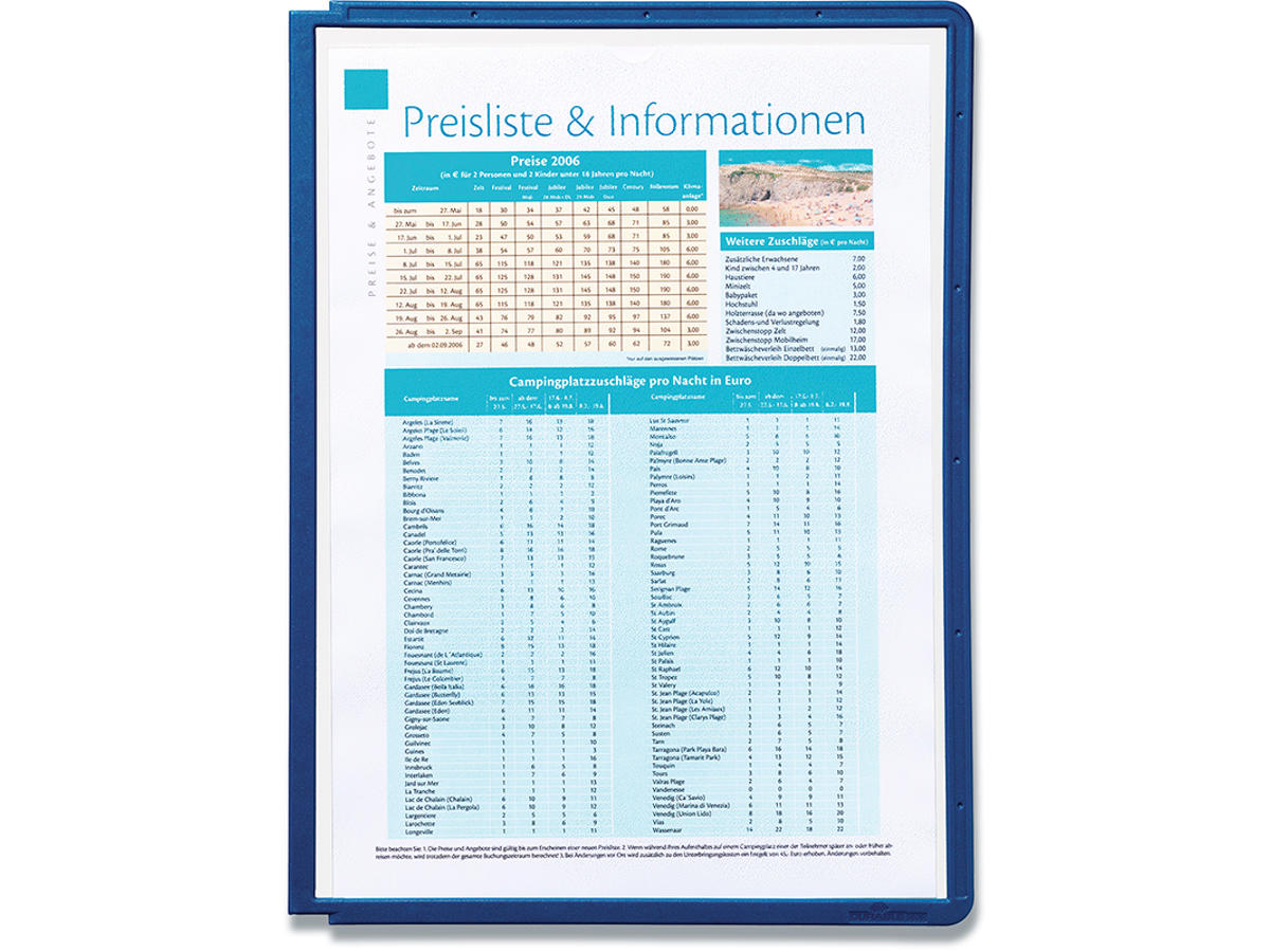 Lomme af pp med farvet ramme med topåbning. Passer DURABLES konsoller til brug i register-/display-/oversigt-systemer der har pin på konsollen. Lomme kan udstyres med etiketholder, at fastgøre langs den øvre kant eller side og er let justerbare (Durable art nr 560919).