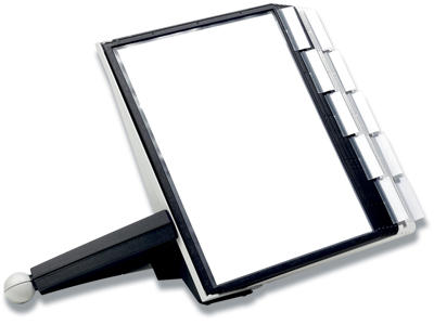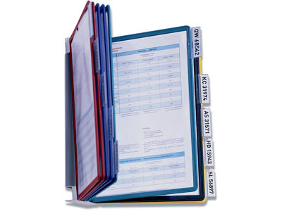 Lomme af pp med farvet ramme med integreret pin. Kun til brug i register-/display-/oversigt-systemer der har konsoller med pin hul (Kan ikke anvendes i DURABLE registersystemer). Topåbning. Lomme kan udstyres med etiketholder, at fastgøre langs den øvre kant eller side og er let justerbare Durable art nr 560919.
