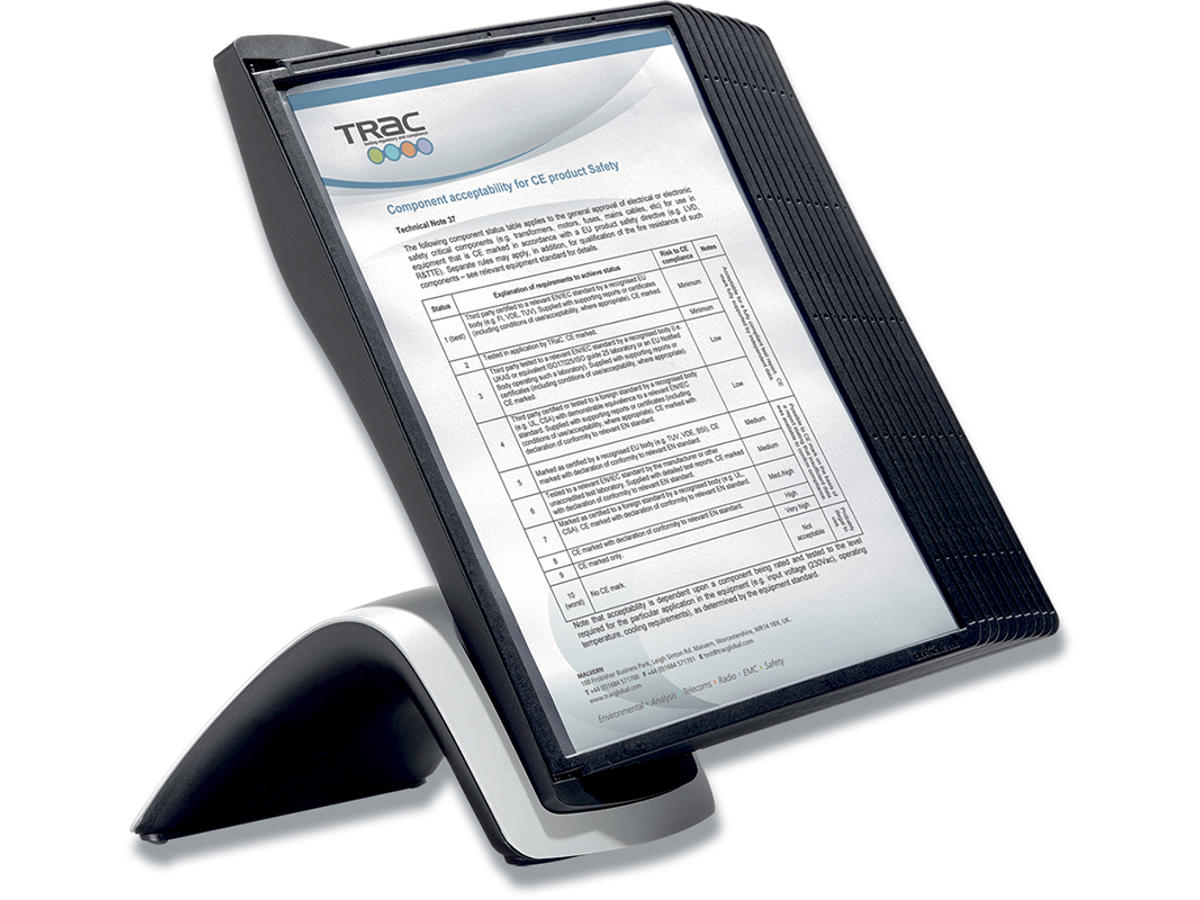 Komplet displaysystem af plast i stilrent design kombineret med høj funktionalitet. Med 10 stk. sorte A4 lommer i refleksfri polypropylenplast og etiketholder. Det er nemt at skifte indhold i de miljøvenlige lommer. Oversigtsystemet beskytter dine dokumenter, samtidig med at den giver en god oversigt. Skridsikker og stabil base.