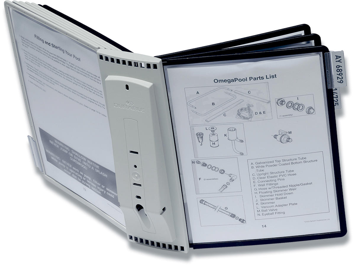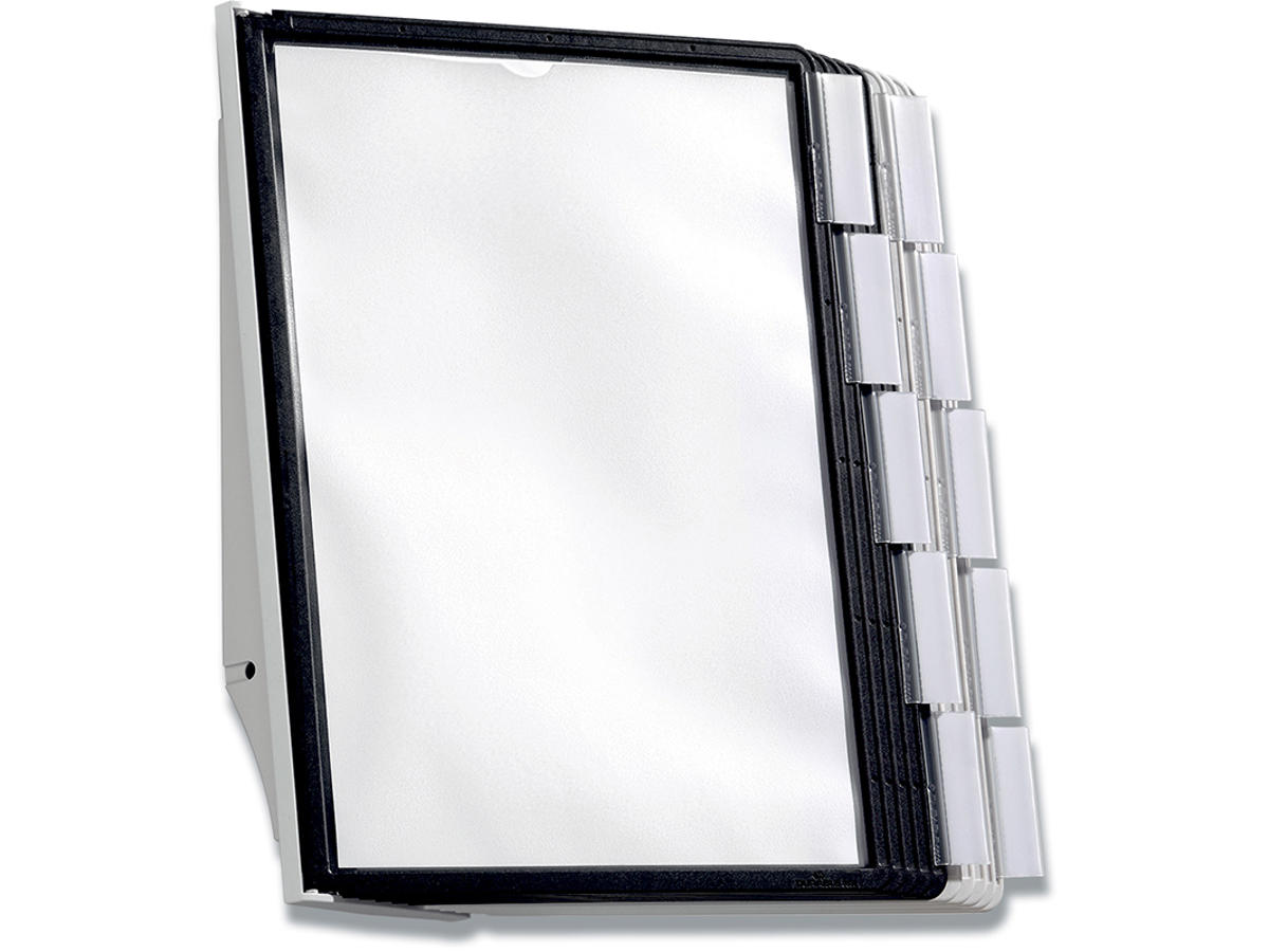 Find informationer nemt og hurtigt i en præsentabel fremvisning ved hjælp af displaysystemet SHERPA®. Oversigtsystemet leveres komplet med 10 stk. lommer A4 i farverne sort og grå i refleksfri polypropylenplast. Base af plast hænges på væggen, skruer følger med også etiketholder. 5 års garanti hvis produktet har en defekt som skyldes en fabrikationsfejl.