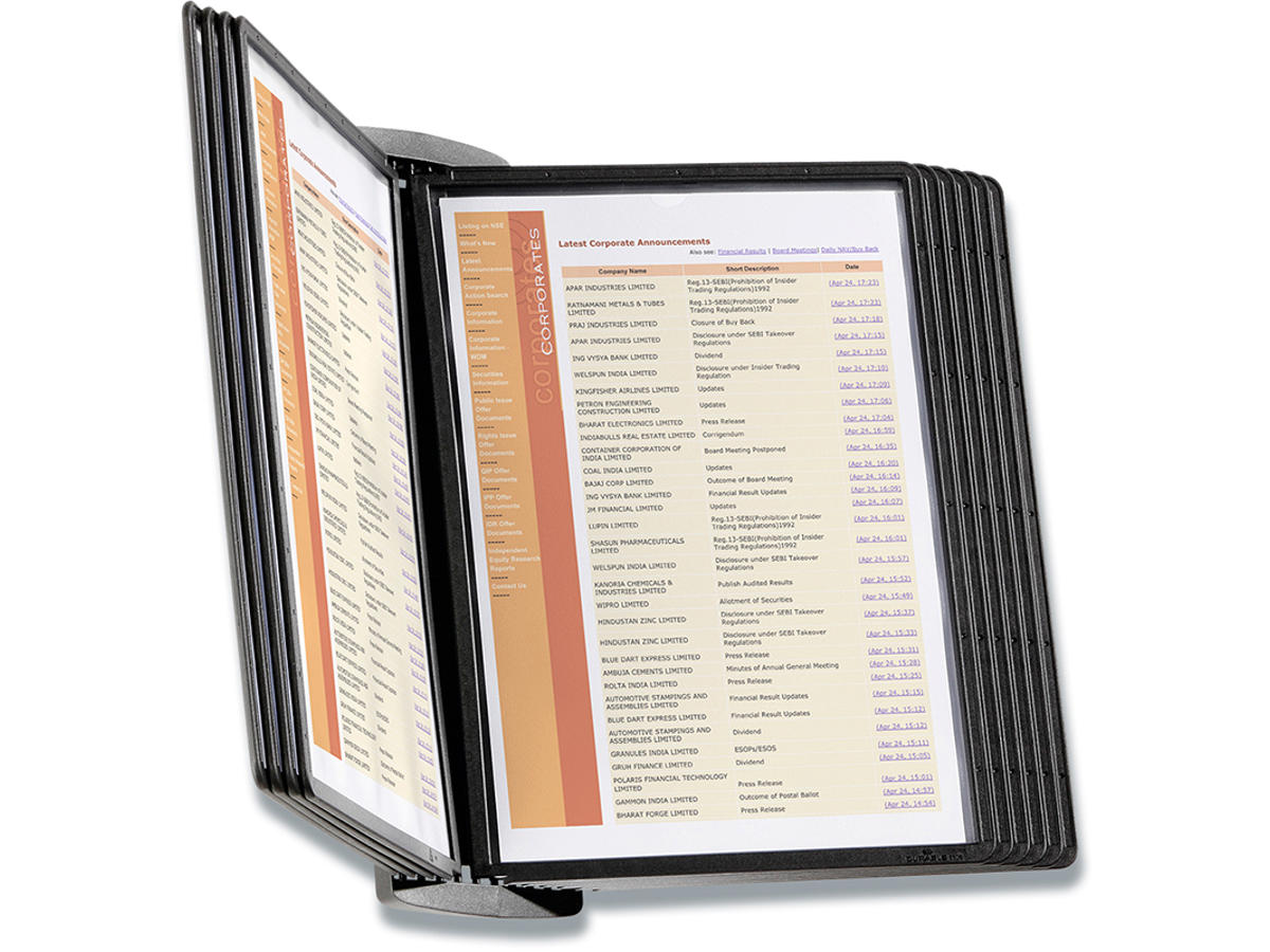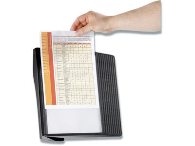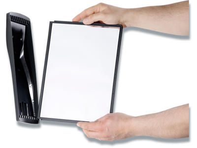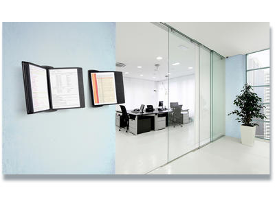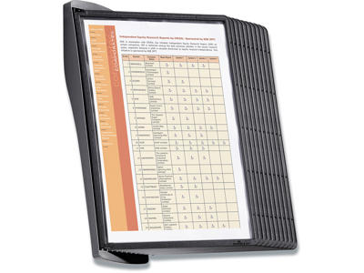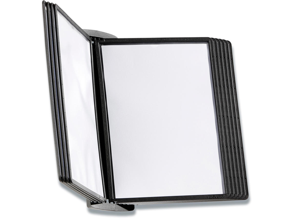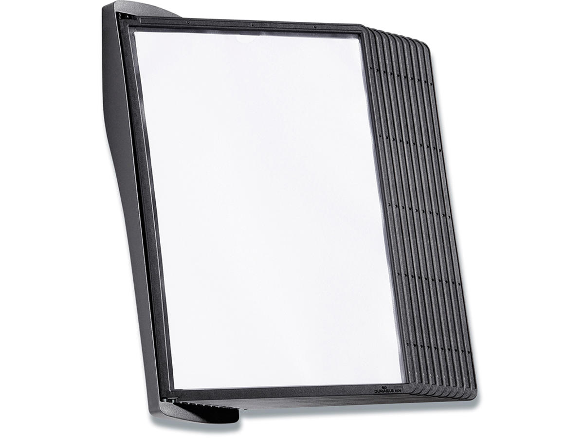 Komplet displaysystem af plast i stilrent design kombineret med høj funktionalitet. Med 10 stk. sorte A4 lommer i refleksfri polypropylenplast og etiketholder. Kan nemt monteres på væggen. Det er nemt at skifte indhold i de miljøvenlige lommer. Oversigtsystemet beskytter dine dokumenter samtidig med at den giver en god oversigt.
