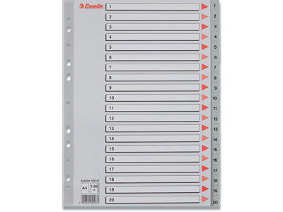 Registerblade, A4 Maxi, 1-20, Grå, Esselte Registerblade, A4 Maxi, 1-20, Grå, Esselte