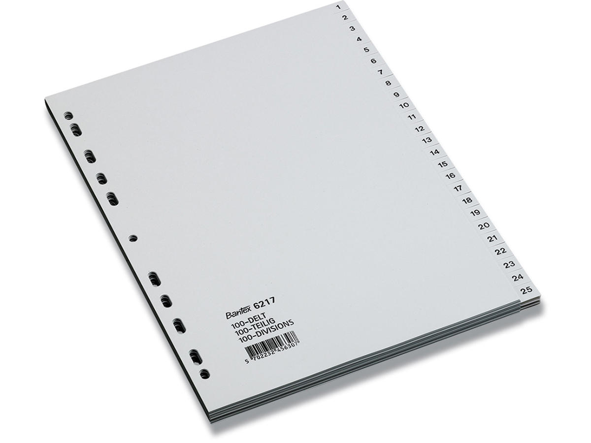 Registerblade, A4, 1-100, Grå, Bantex