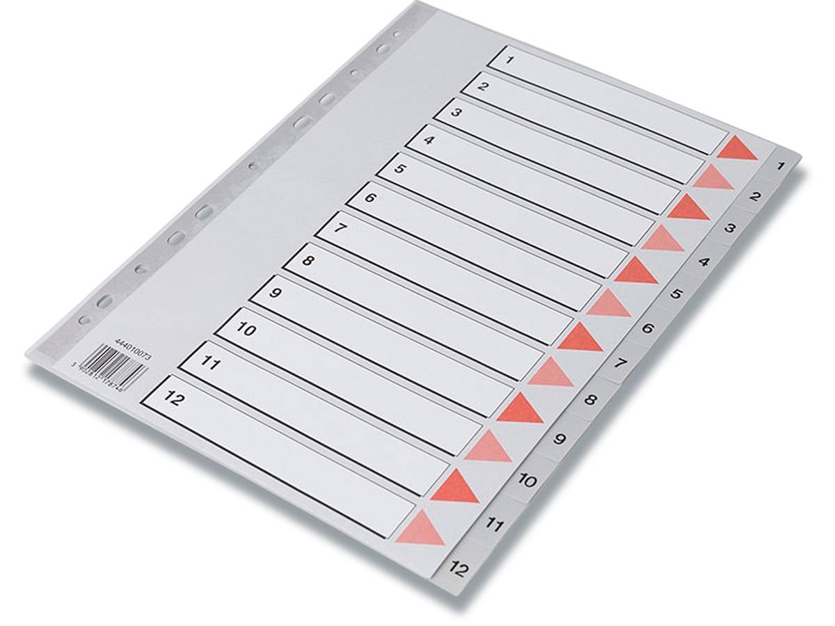 Registerblade, A4, 1-12, Grå, Q-Line
