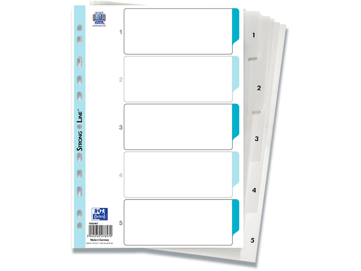 Register fremstillet i ekstra slidstærk PP-folie 120 my. Forsynet med trykt kartonforblad med Strong-Line® hulforstærkning. Gør forbladet personligt på www.oxfordprint.com