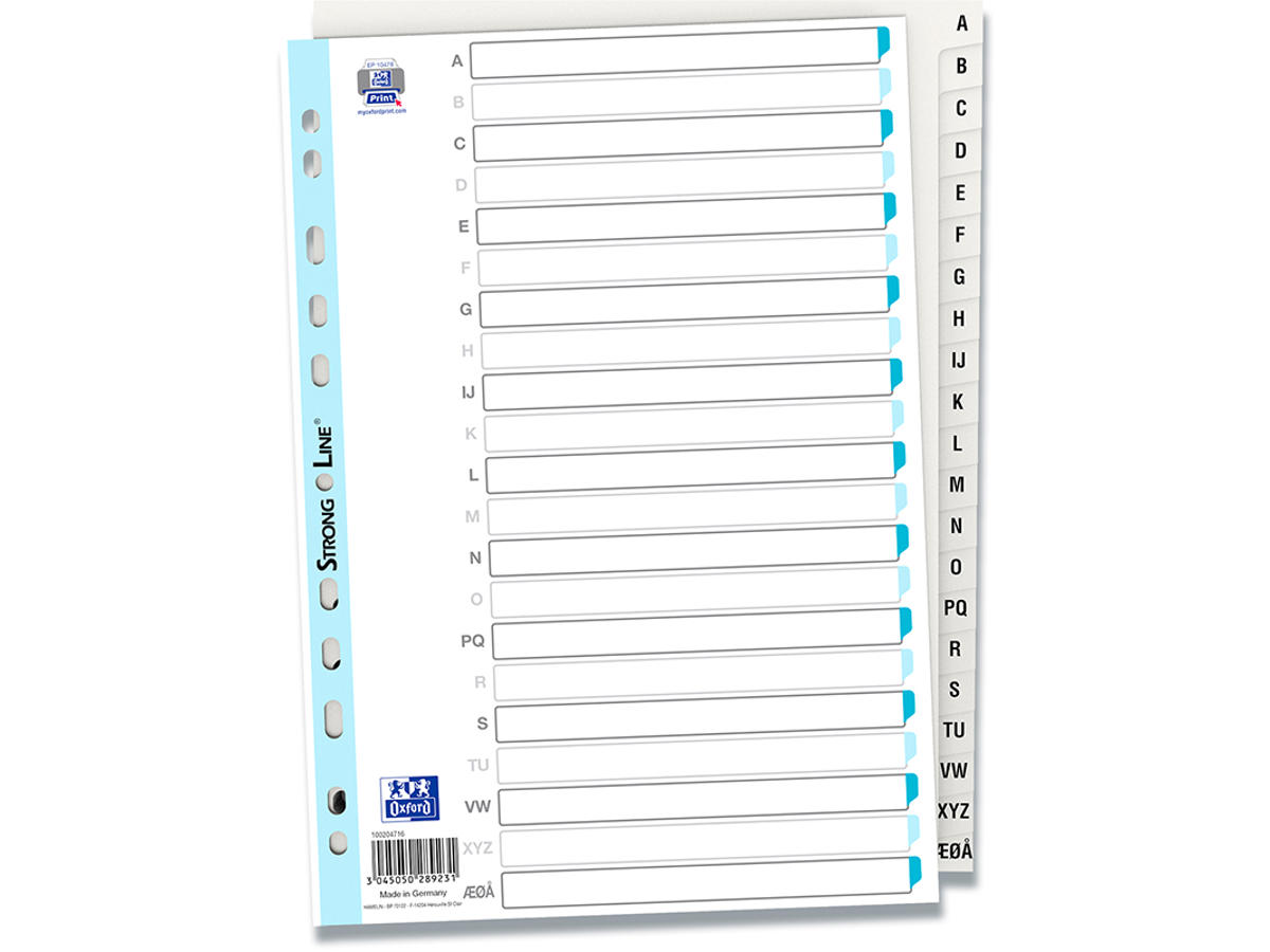 Register fremstillet i slidstærk PP-folie. Forsynet med trykt kartonforblad med Strong-Line® hulforstærkning. Personliggør forbladet på www.oxfordprint.com