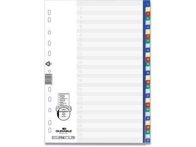 Registerblade, A4, 1-31, Flerfarvet, Durable Registerblade, A4, 1-31, Flerfarvet, Durable