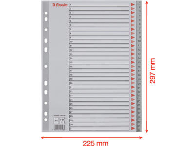 Registerblade, A4, 1-20, Grå, Esselte Registerblade, A4, 1-20, Grå, Esselte