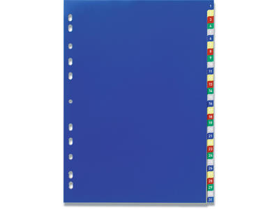 Registerblade, A4, 1-31, Flerfarvet, Esselte Mylar Registerblade, A4, 1-31, Flerfarvet, Esselte Mylar