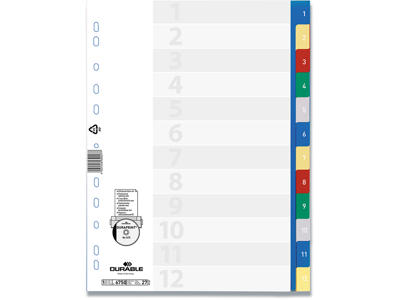 Registerblade, A4, 1-12, Flerfarvet, Durable Registerblade, A4, 1-12, Flerfarvet, Durable
