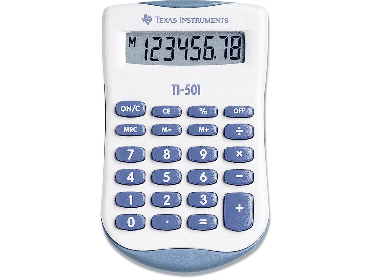 Junior lommeregner fra Texas Instruments model TI 501 med 8 cifre display. Kører på batteri og