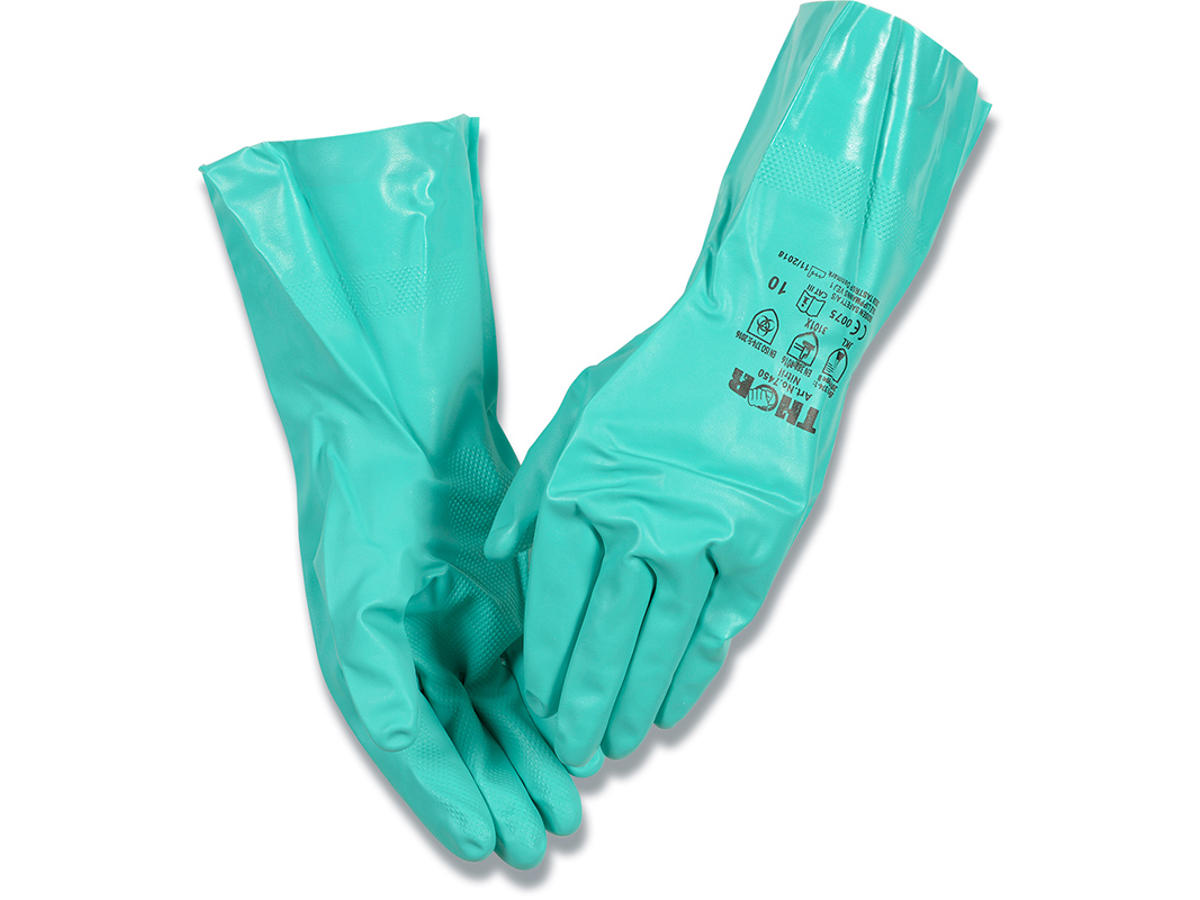 Nitril handske med indvendig velourisering og ru overflade. Handsken har en god beskyttelse mod mange opløsningsmidler samt oliebaserede kemikalier. Ru overflade, som giver et godt greb. Undersøg handsker for fejl og defekter, inden du bruger dem.