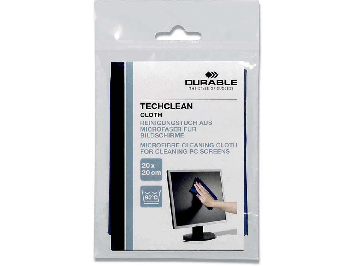 Denne micro-fiber klud er i en meget høj kvalitet og specielt fremstillet til rengøring af følsomme overflader som skærme, displays, briller, CD/DVD`er med mere. Rengøringskluden har en fin fiberstruktur der tiltrækker støvpartikler og renser uden at ridse. Durable Techclean rengøringsklud måler 20 x 20 cm og kan vaskes ved 95° C.Indhold: 1 stk. micro-fiber klud.